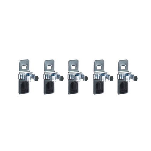 Klem uw gereedschap eenvoudig vast. Robuuste uitvoering van 6 mm dik materiaal. Zet de houder in een handomdraai vast met de kunststof borgclips.