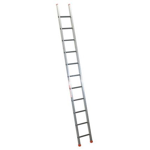 - Enkelvoudige aluminium ladder voor professioneel gebruik, met uitlopende basis. Gebruiksvriendelijk door de eenvoudige afwerking van ruw aluminium met plat profiel. Rechte antisliptreden, 100% horizontale positie. Voor professionals die op zoek zijn naar een betrouwbare, duurzame en voordelige ladder.