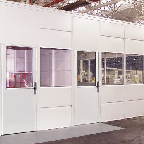 Enkelvoudige scheidingswand van plaatstaal - Paneel in glas - Hoogte 2,51 m