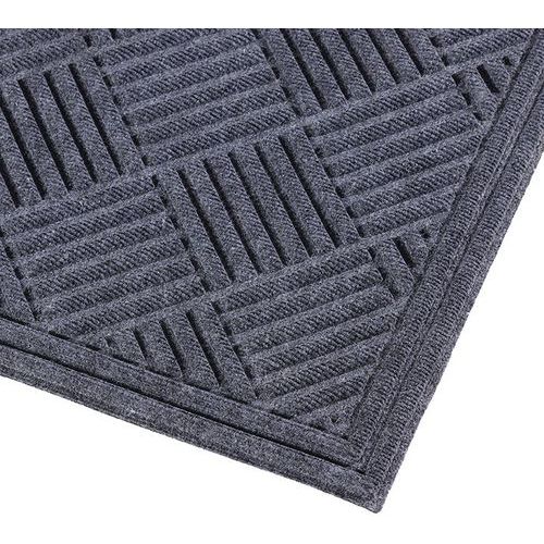Robuuste entreemat met het gepatenteerd ontwerp ‘Aqua Dam’. De mat heeft 4 gestoffeerde, verhoogde randen, die functioneren als een opvangbak en tot wel 4 liter water per vierkante meter kunnen vasthouden. De bovenlaag van injectiegevormd textiel heeft een gepatenteerd ontwerp met diamantpunten en vrije legrichting. Dit heeft een tweeledig effect: het vuil wordt doeltreffend van de schoenen geschraapt én de schoenen worden geveegd. De stevige rubberen onderzijde zorgt voor een maximale weerstand. De noppen aan de onderzijde voorkomt het verschuiven van de mat op elk type vloer én zorgt voor ventilatie, zodat de vloer onder de mat kan drogen.