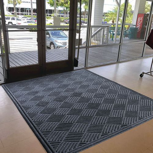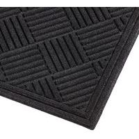 Robuuste entreemat met het gepatenteerd ontwerp ‘Aqua Dam’. De mat heeft 4 gestoffeerde, verhoogde randen, die functioneren als een opvangbak en tot wel 4 liter water per vierkante meter kunnen vasthouden. De bovenlaag van injectiegevormd textiel heeft een gepatenteerd ontwerp met diamantpunten en vrije legrichting. Dit heeft een tweeledig effect: het vuil wordt doeltreffend van de schoenen geschraapt én de schoenen worden geveegd. De stevige rubberen onderzijde zorgt voor een maximale weerstand. De noppen aan de onderzijde voorkomt het verschuiven van de mat op elk type vloer én zorgt voor ventilatie, zodat de vloer onder de mat kan drogen.
