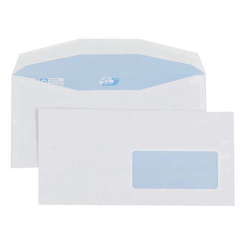 - Envelop, wit voorzien van sluiting met trapeziumvormige kleefstrook, geschikt voor couverteren via kantoorautomatisering.