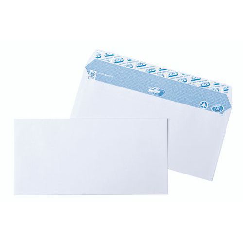 Envelop, wit met blauwe binnenkant voor het in alle vertrouwelijkheid verzenden van uw dagelijkse post. Beveiligde verzending dankzij de zelfklevende sluiting met stripsluiting en verstevigde verlijming. Stevig papier van goede kwaliteit.
