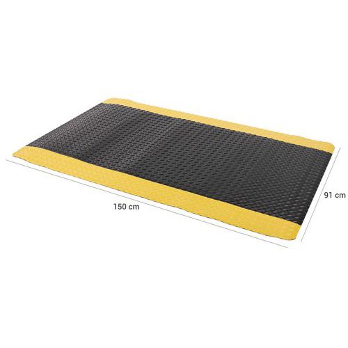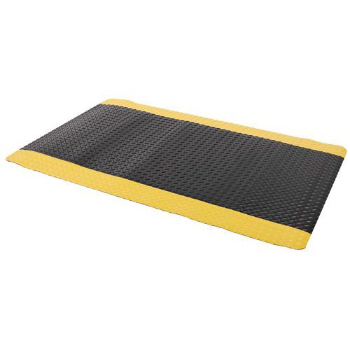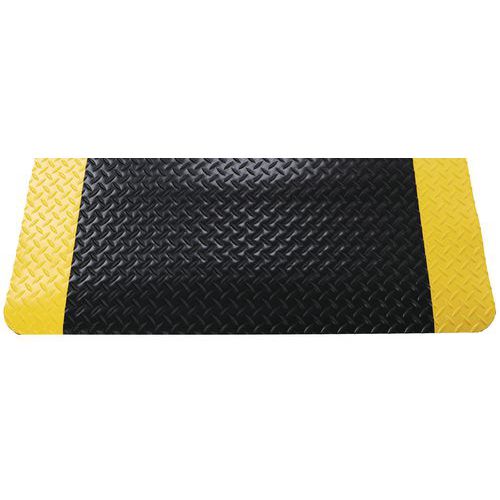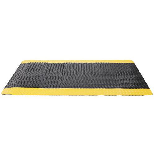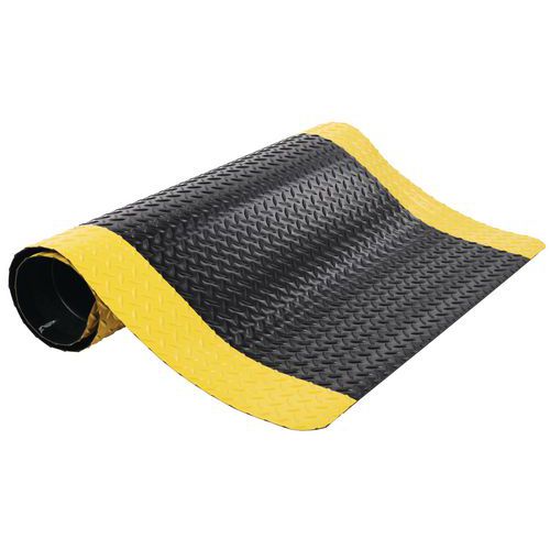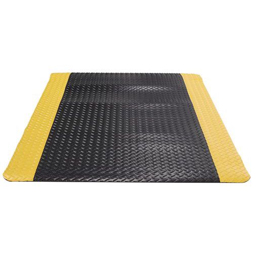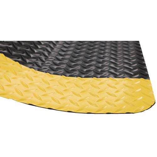 Ergonomische antivermoeidheidsmat, ontworpen voor zeer intensief gebruik in droge industriële omgevingen. Duurzaam met oppervlak van gelamineerd PVC op een basis van microcellulair vinylschuimrubber. Uitzonderlijke eigenschappen die vermoeidheid voorkomen. Zeer comfortabel door de dikte van 14 mm. Oppervlak van diamantplaatstaal voor perfecte grip en eenvoudige draaibewegingen. Antislipbekleding RedStop™ houdt de mat op zijn plaats zonder te verschuiven.
