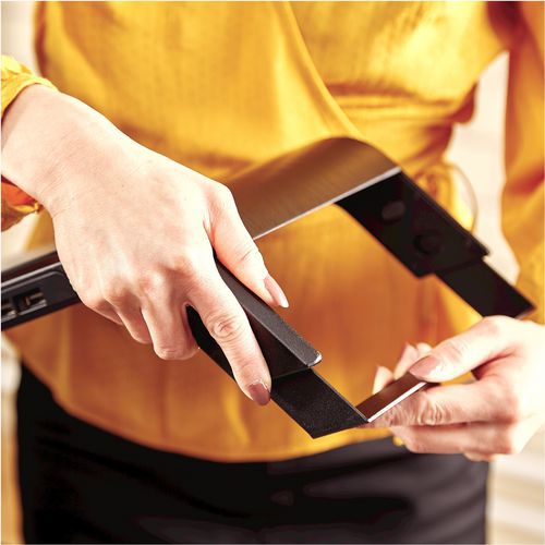 Belangrijk: schermhouder voldoet aan specifieke ergonomische criteria van FIRA en is getest en geaccrediteerd FIRA EN ISO 9241-5 door FIRA International LTD. De tests hebben aangetoond dat de ergonomische eigenschappen van de laptophouder zorgen voor een verbetering van het welzijn en de gezondheid van de gebruiker.