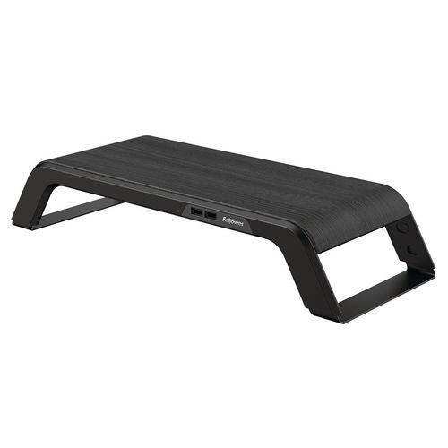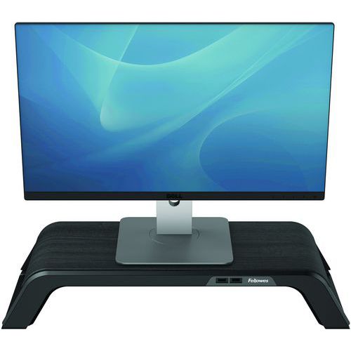 Elegante en minimalistische schermhouder met USB-aansluiting.