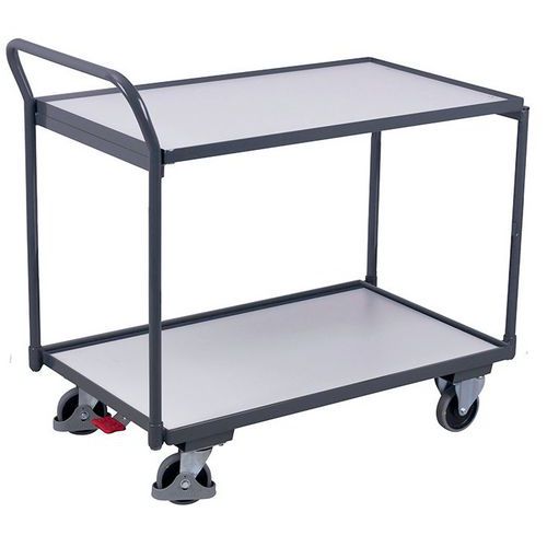 Ergonomische wagen met 2 houten plateaus ESD - Verticale duwbeugel - Draagvermogen 250 kg