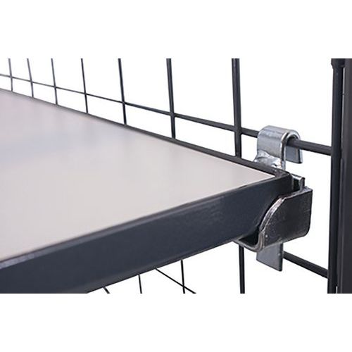 ESD etagewagen gelast Laadhoogte: 295 mm Hoogte duwbeugel: 1.040 mm Uitvoering: * trek- en duwbeugel met zachte zwarte kunststof bekleding * kopse wanden, wanden lengterichting en dak van draadgaas, maaswijdte: 50 x 50 x 4 mm * incl. 1 vaste en 4 verstelbare inlegbodems, variabel inzetbaar in stappen van 50 mm, draagvermogen per etagebodem: 80 kg * bodem en inlegbodems van 15 mm sterke decorspaanplaat, lichtgrijs, electrisch geleidend * etagebodems ingelegd in hoekstaal frame Kleur: RAL 7024 grafietgrijs, electrisch geleidend, gepoedercoat Wielset: Bandage van electrisch geleidend elastisch rubber op kunststof velg met precisie kogellager, grijs, diameter 200 mm, 2 zwenkwielen met centrale EasySTOP rem en 2 bokwielen, zwenkwielen met voetbeschermer Draagvermogen: 500 kg Gemaakt in de EU Max. belasting (kg) : 500 Montage : Zelfbouw