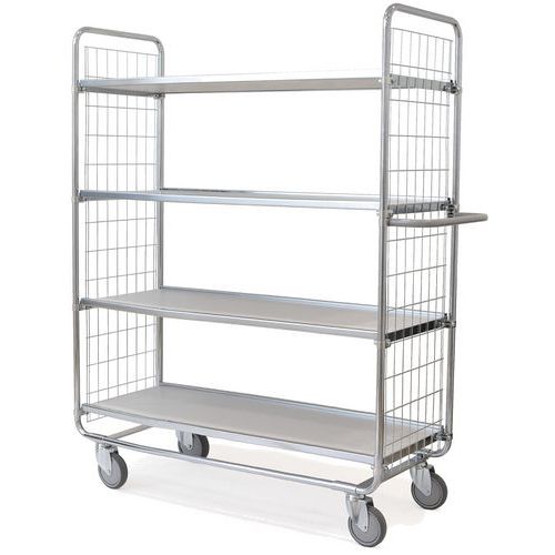 - Etagewagen van Zweedse makelij in blank gegalvaniseerd staal - perfect als orderpickwagen op voorraad of in een winkel.