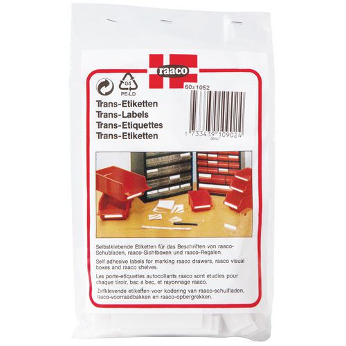 Etiketten te gebruiken in de laden van uw Raaco kast. Beschrijf de inhoud op de etiketten en maak uw kast overzichtelijker.
