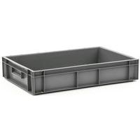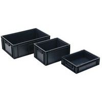 - Euronorm 600x400 mm stapelbare bakken van geregenereerd materiaal zijn verkrijgbaar in verschillende hoogtes. De bakken hebben een vaste bodem met opengewerkte wanden of een opengewerkte bodem en opengewerkte wanden. Bovendien hebben alle bakken handgrepen met gaten aan de kleine zijkanten.