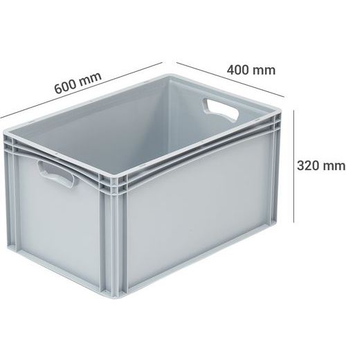 Euronorm-bak dicht- Lengte 600 mm, Totale inhoud: 64 L, Stapelbaar: ja, Totale hoogte: 320 mm