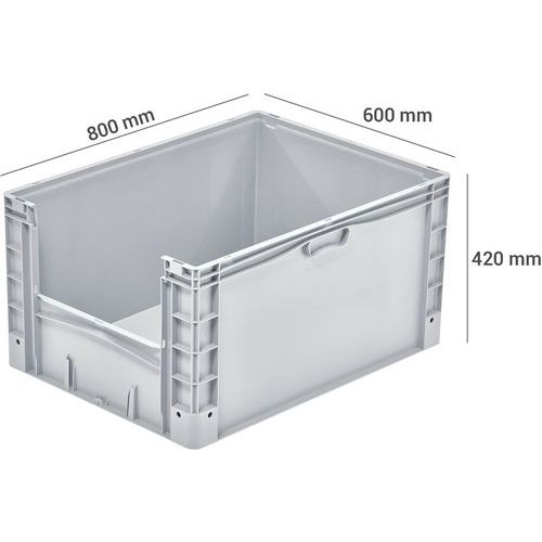 | Productnaam | Euronorm-bak dicht, Totale inhoud: 168 L, Stapelbaar: ja, Totale hoogte: 420 mm, Totale breedte: 600 mm |