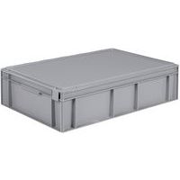 Verbonden scharnierend deksel voor eenvoudig openen en sluiten. Uw goederen beschermd dankzij de verzegelbare openingen. Geribbelde structuur en ingebouwde handgrepen, voor een betere weerstand tegen zware belasting. Uitwisselbaar met Euronorm-bakken. De bakken stapelen 7 mm in elkaar. Zo zal een bak met een hoogte van 129 mm in totale hoogte worden gestapeld tot 122 mm.
