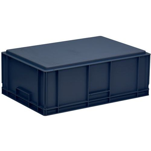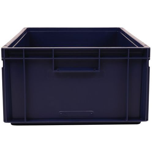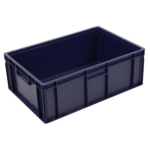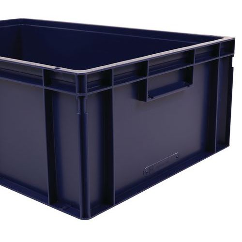 Euronorm-bak met grote stabiliteit bij het stapelen. Gesloten handvatten: eenvoudig te hanteren zonder ruimteverlies. Bestand tegen oliën, vetten en tal van chemische producten.