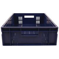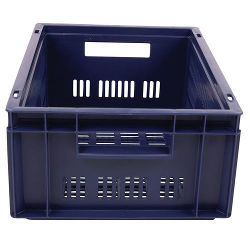 Euronormbak met grote stabiliteit bij het stapelen. Goede ventilatie dankzij de open wanden. Eenvoudig in gebruik dankzij de brede open handgrepen. Bestand tegen oliën, vetten en tal van chemische producten. Gemaakt van polypropyleen.