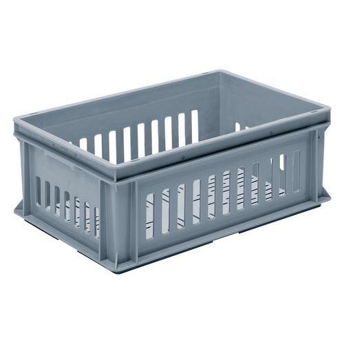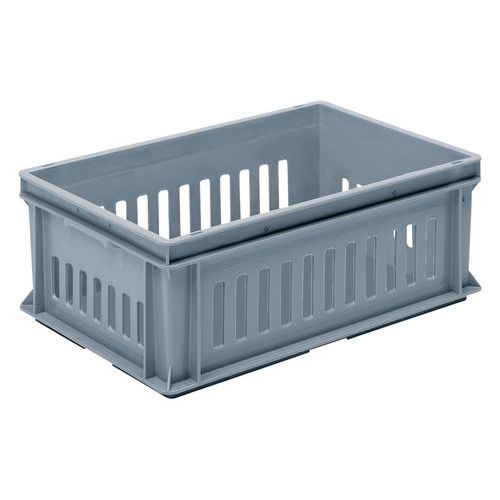 Onvervormbare en zeer schokbestendige Euronormbak. Vormvast, zelfs als de inhoud ongelijk verdeeld is. Zeer stabiel bij stapelen dankzij de verstevigde structuur. Kunststof bak voor eenvoudig vervoer dankzij de schelphandgrepen. Optimaal opbergvolume dankzij de rechte hoeken. Bestand tegen olie, vetten, zouten, zuren en reinigingsmiddelen.
