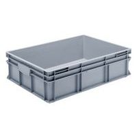 Onvervormbaar, zelfs bij slecht verdeelde belading of schokken. Bijzonder stabiel stapelbaar dankzij de verstevigde structuur. Euronorm-bak met een optimaal volume, dankzij de rechte hoeken. Gemakkelijk te vervoeren dankzij de schelp-handgrepen. Bestand tegen olie, vetten, zouten, zuren en reinigingsmiddelen.