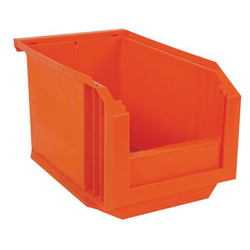 Erg stevig dankzij de dubbele wanden en de versterkingsnerven. De Europese stapelbak is bestand tegen schokken, zelfs in het geval van intensief gebruik. Voorzien van etikethouder. Gemaakt in de EU Klantgarantie : 3 jaar Max. belasting (kg) : 10