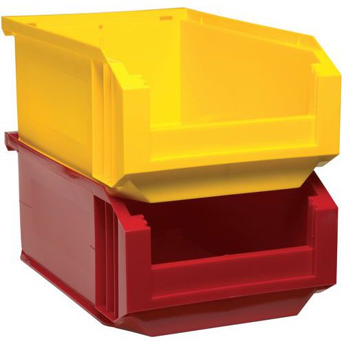 Erg stevig dankzij de dubbele wanden en de versterkingsnerven. De Europese stapelbak is bestand tegen schokken, zelfs in het geval van intensief gebruik. Voorzien van etikethouder. Gemaakt in de EU Klantgarantie : 3 jaar Max. belasting (kg) : 14