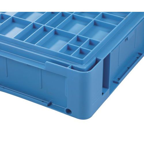Conform de afmetingen van Euronormbakken. Uitstekend bestand tegen schokken en opstapelen dankzij de versterkte wanden en bodems en hoeken met dubbele wand. Eurotec-bak met ergonomische handgrepen voor een vereenvoudigd manueel transport. Geschikt voor diverse soorten automatische verwerking: robot, lopende band, transportmagazijn en -installatie. Gemakkelijk te identificeren door de etikethouder. Gemaakt in de EU Culinair Klantgarantie : 3 jaar