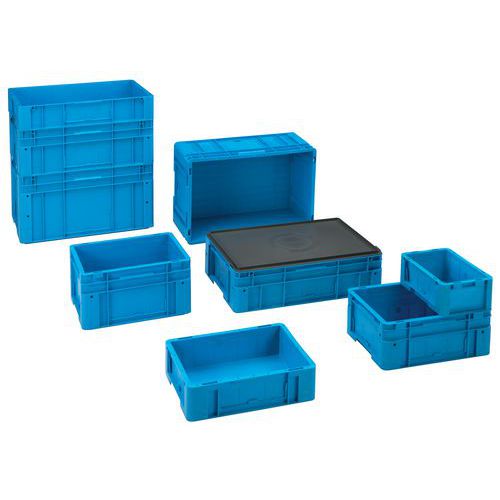 Conform de afmetingen van Euronormbakken. Uitstekend bestand tegen schokken en opstapelen dankzij de versterkte wanden en bodems en hoeken met dubbele wand. Eurotec-bak met ergonomische handgrepen voor een vereenvoudigd manueel transport. Geschikt voor diverse soorten automatische verwerking: robot, lopende band, transportmagazijn en -installatie. Gemakkelijk te identificeren door de etikethouder.