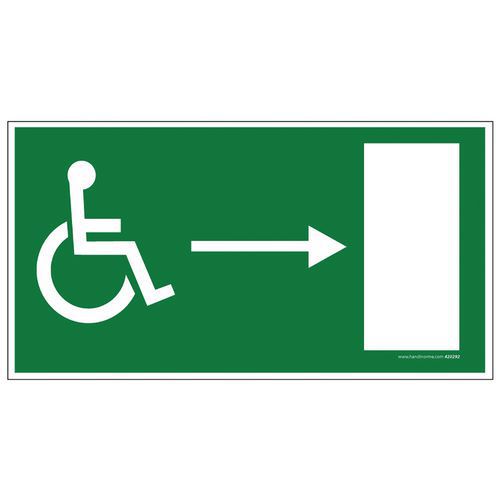 Evacuatiebord Personen met een beperkte mobiliteit uitgang rechts