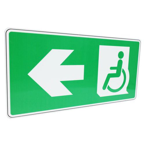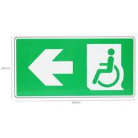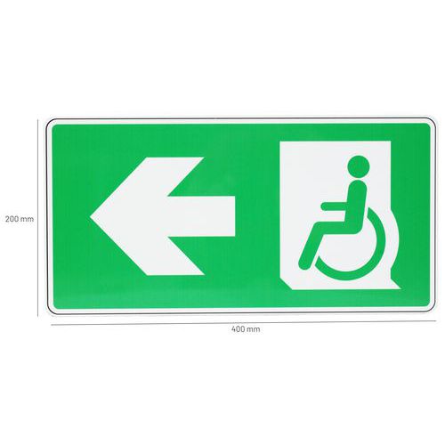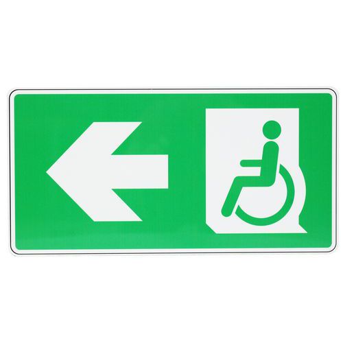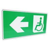 | Productnaam | Bord Rolstoeluitgang, pijl naar links, aluminium, Zelfklevend: nee, Stijf: ja, Norm ISO 7010: ja |