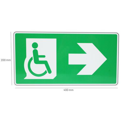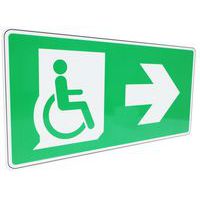 | Productnaam | Bord Rolstoeluitgang, pijl naar rechts, aluminium, Zelfklevend: nee, Stijf: ja, Norm ISO 7010: ja |