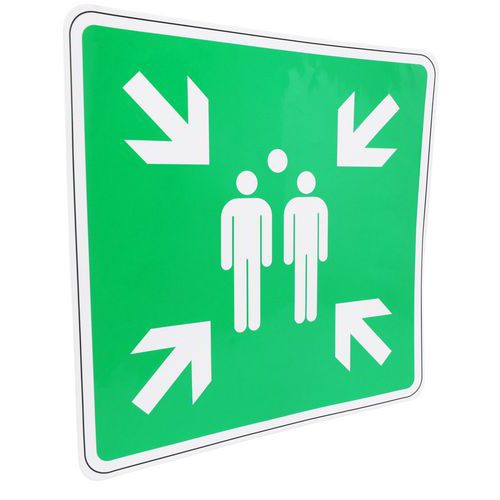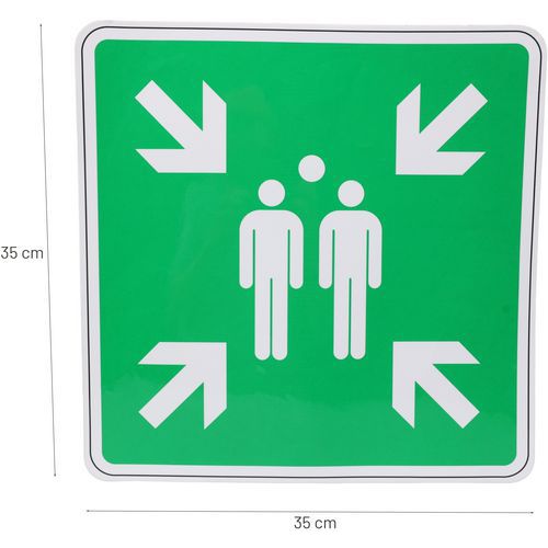 - Stel een verzamelpunt vast en organiseer de evacuatie van uw personeel nu met dit zelfklevende evacuatiebord.