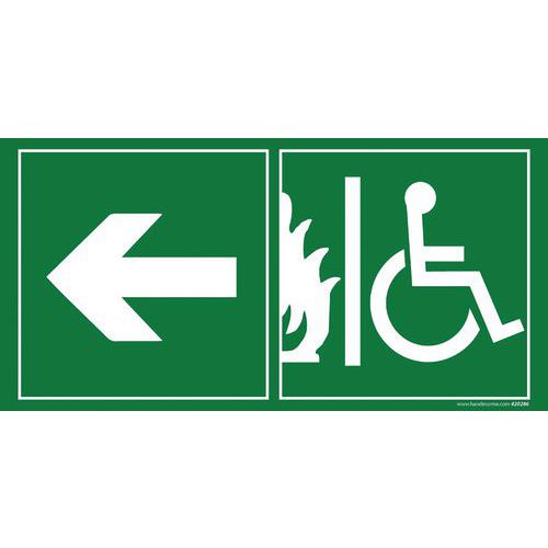 - Dit pictogram voor gehandicapten Nooduitgang links kan gebruikt worden op alle openbare plaatsen zoals hotels, theaters, winkelcentra, etc.