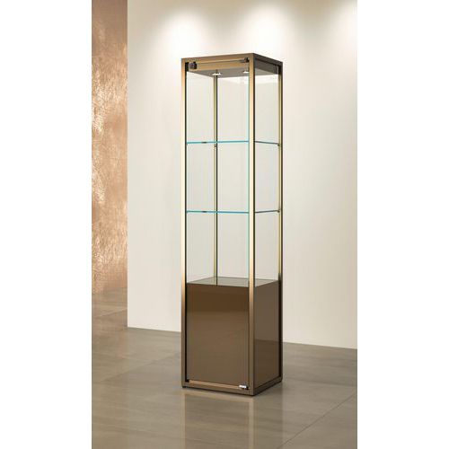 Vitrinekast hoog met opbergruimte, Onderstel kleur: Brons, Hoogte: 190 cm, Breedte: 45 cm, Diepte: 45 cm