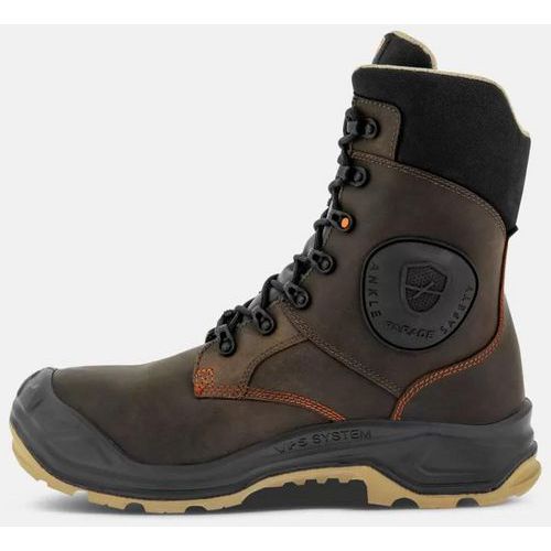Hoge veiligheidsschoen voor dames en heren, biedt volledige bescherming. Beschermt tegen perforatie, uitglijden en beknelling van tenen en tegen koolwaterstoffen. Isolerende, vochtwerende zool die beschermt tegen kou, warmte en contactwarmte. Verstevigde bescherming dankzij de stootneus aan de voorvoet, die voldoet aan de SC-norm. Verbeterde veiligheid met grip bij de hak en rubberen versteviging bij de enkels.