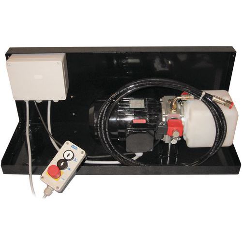 - Afmetingen van de hydraulicagroep: 40 x 40 x 65 cm. Schakelkast aan de binnenkant van de houder.