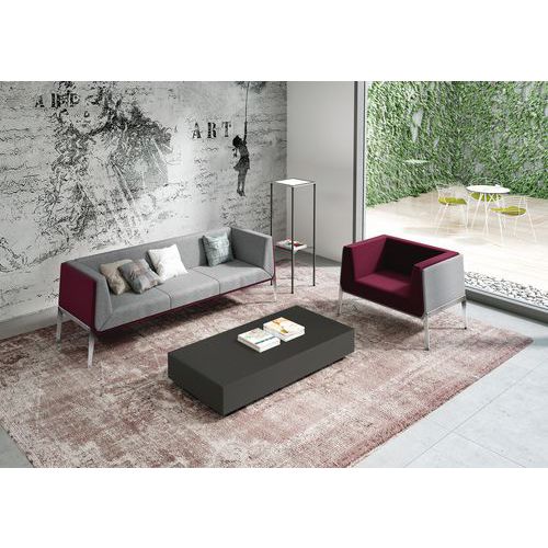 - Tweekleurige fauteuil met één zitplek in een eigentijdse vorm met vierkante buis.