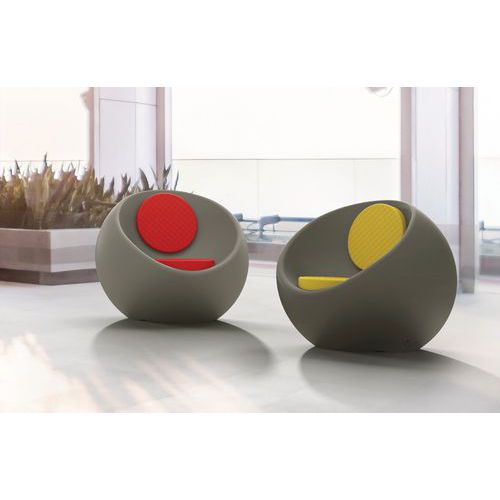 Zeer comfortabele stoel. Van door en door gekleurd rotatiegegoten polyethyleen, gemiddelde dikte: 7 mm. Geschikt voor binnen en buiten, aangezien het gebruikte polyethyleen bestand is tegen alle weersomstandigheden en uv-straling (temperatuur: -30 tot +60 °C). Onderhoud: hogedrukreiniger (1 keer/jaar). 10 standaardkleuren voor de stoel en 5 standaardkleuren voor de zitting en rugleuning. Bevestiging op de vloer met 3 platen en schroeven M8 (niet inbegrepen en als optie leverbaar). Vastzetten met ballast mogelijk, neem hiervoor contact met ons op (zand niet inbegrepen en als optie leverbaar). Overige standaard-RAL-kleuren op aanvraag. Gemaakt in de EU Klantgarantie : 5 jaar