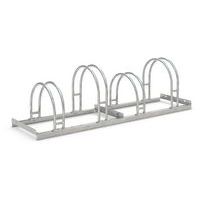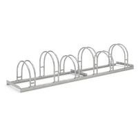 Robuust ontwerp van staal, beschermd tegen corrosie door boogvormige beschermbeugels. Biedt veel ruimte in een beperkte ruimte. Overal te gebruiken waar fietsen snel worden geparkeerd: voor winkels, kantoren, enz. De verankeringen in de vloer en de montagesteunen worden afzonderlijk verkocht. Gemaakt in de EU