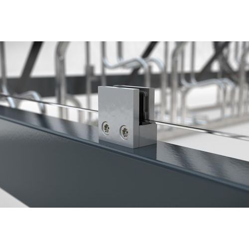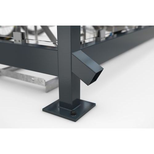 Fietsenstalling Dresden is gemaakt van stevig materiaal en bestand tegen slecht weer. Ze beschermt fietsen tegen regen, sneeuw, wind, zon en vandalisme. De constructie van staal is warm gegalvaniseerd en gespoten met een milieuvriendelijke tweecomponentenlak, voor een middelhoge corrosiebestendigheidsklasse van C4. Enkelhellend dak met goot voor het afvoeren van regenwater. Achterwand en zijwanden van gehard veiligheidsglas.