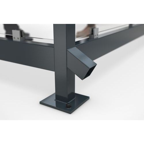Fietsenstalling Dresden is gemaakt van stevig materiaal en bestand tegen slecht weer. Ze beschermt fietsen tegen regen, sneeuw, wind, zon en vandalisme. De constructie van staal is warm gegalvaniseerd en gespoten met een milieuvriendelijke tweecomponentenlak, voor een middelhoge corrosiebestendigheidsklasse van C4. Enkelhellend dak met goot voor het afvoeren van regenwater. Achterwand en zijwanden van gehard veiligheidsglas. Klantgarantie : 2 jaar Montage : Zelfbouw