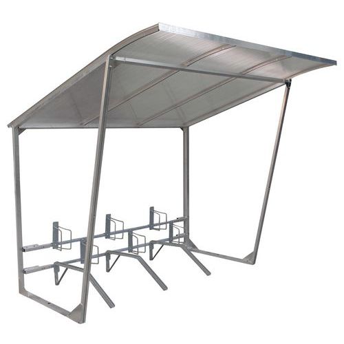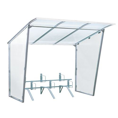 - Fietsenstalling met halfdoorzichtig dak van polycarbonaat.