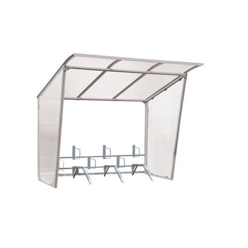 Fietsenstalling met halfdoorzichtig dak van polycarbonaat.