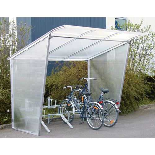 - Fietsenstalling met halfdoorzichtig dak van polycarbonaat.