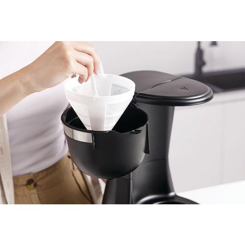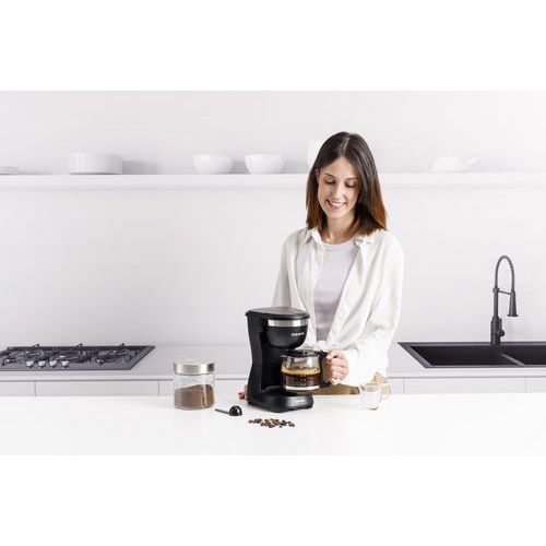 Filterkoffiezetapparaat Verona - 6-12 kopjes, met een warmhoudplaat die de koffie gedurende enkele uren op een aangename temperatuur houdt. Met glazen kan, zodat de hoeveelheid resterende koffie eenvoudig is te zien, en omdat dit vaak mooier uitziet. Het permanente filter is zowel voordelig als milieuvriendelijk, doordat geen filters meer nodig zijn die regelmatig moeten worden vervangen. Waterreservoir met zichtbaar waterniveau, om het bijvullen eenvoudig te maken en overstromen te voorkomen. Automatische uitschakeling na 40 minuten, voor extra veiligheid (voorkomt oververhitting) en energiebesparing. Met indicatorlampje dat duidelijk aangeeft of het apparaat aan staat: praktisch en veilig.