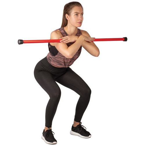 Staaf met een diameter van 28 mm en een comfortabel aanvoelende polyethyleen coating. Afsluitdoppen aan elk uiteinde, behalve voor 6 kg, verduisteringsdop. Lengte is indicatief en varieert tussen 1,18 m en 1,22 m. Verkrijgbaar in kleuren die overeenkomen met de verschillende gewichten. Gewicht 1 kg, kleur oranje, lengte: 1,2 m. Gewicht 1,5 kg, kleur grijs, lengte: 1,2 m. Gewicht 2 kg, kleur blauw, lengte: 1,2 m. Gewicht 3 kg, kleur rood, lengte: 1,2 m. Gewicht 4 kg, kleur groen, lengte: 1,2 m. Gewicht 5 kg, kleur zwart, lengte: 1,2 m. Gewicht 6 kg, kleur blauw of zwart naargelang beschikbaarheid, lengte: 1,2 m. Gemaakt in Europa.