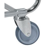 4 zwenkwielen diameter 125 mm, rubberen banden, waarvan 2 wielen met rem (EN1757-3)