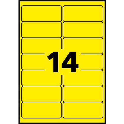 Fluorescerende etiket, herplaatsbaar Avery, Aantal etiketten/vel: 14, Aantal etiketten: 350