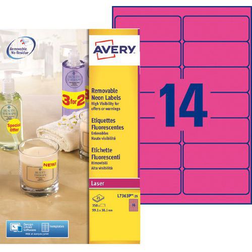 Fluorescerende etiket, herplaatsbaar Avery - Voor laserprinter