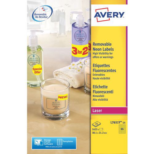 Fluorescerende etiket, herplaatsbaar Avery - Voor laserprinter