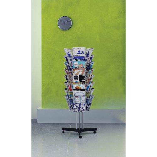 | Productnaam | Mobiel display Filario 3-zijdig, Aantal legborden: 24, Kleur: Grijs, Totale breedte: 64 cm |