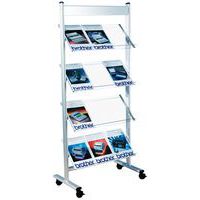 Presentatiestandaard voor brochures met stalen kader. Uitgerust met 4 zwenkwieltjes met rem. Bladen van superieure kwaliteit plexiglas.